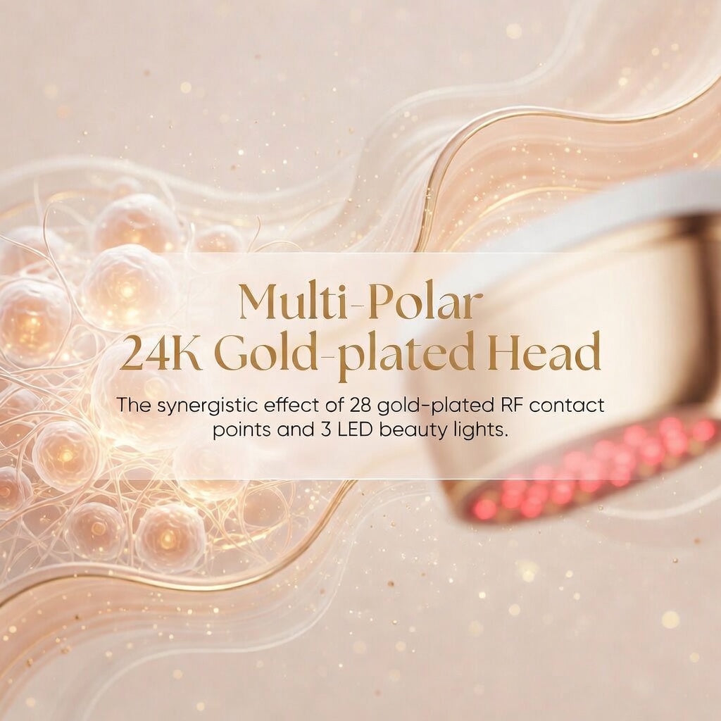 Thermal Collagen Stimulation (42°C): Safely penetrates deeper layers to awaken the skin's natural regenerative abilities, delivered through a highly efficient gold-plated head, stimulates collagen production to revitalize your skin from the inside out.